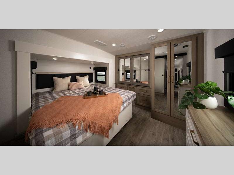 Sleeps 5 Slides 3 Length 0 ft Ext Width 8 ft 1 in Ext Height 0 ft Int Height 8 ft 8 in Interior Color Calli Linen Tire Size ST235/80R16H Furnace BTU 35000 btu Available Beds King, Two Twins Refrigerator Type 12V Refrigerator Size 16 cu ft Cooktop Burners 3 Shower Size 30" x 48" Number of Awnings 2 LP Tank Capacity 30 lbs Water Heater Type Tankless AC BTU 30000 btu TV Info LR 4K Ultra HD Smart TV Awning Info 9' and 20' Electric with dimmable LED lights Axle Count 2 Number of LP Tanks 2 Shower Type Standard Electrical Service 50 amp Solar Wattage 200 watts Similar Floorplans