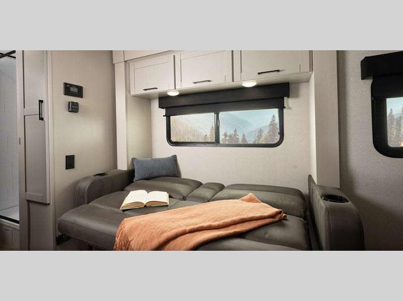 Additional stand-out features include a Rock Solid jacks helps you achieve a level trailer with less effort and time. You algo have an on demand water heater, and a Magnum Truss roof system, tested to withstand 4,500 lbs! Inside, you'll be met with residential-style seamless countertops throughout, spacious handcrafted, hardwood door/drawer fronts, and residential vinyl flooring throughout that will be easy to keep clean.