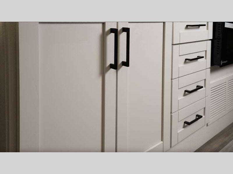 Each is built with a Stronghold VBL™ roof, floor, and sidewalls creating the lightest, yet strongest construction, and a one-piece, seamless fiberglass front cap that resists damage from moisture and debris. There are also aluminum running boards for easy entry into the cab and the main entrance which includes the industry's largest travel-view window and electric-powered step with an integrated house battery compartment. The interior offers seatbelts in all designed seating locations to protect your loved ones, hardwood cabinet doors and drawers for style and durability, high-intensity recessed LED ceiling lights and LED-lit slideout fascia, plus an interior command center and pleated blackout shades for privacy.